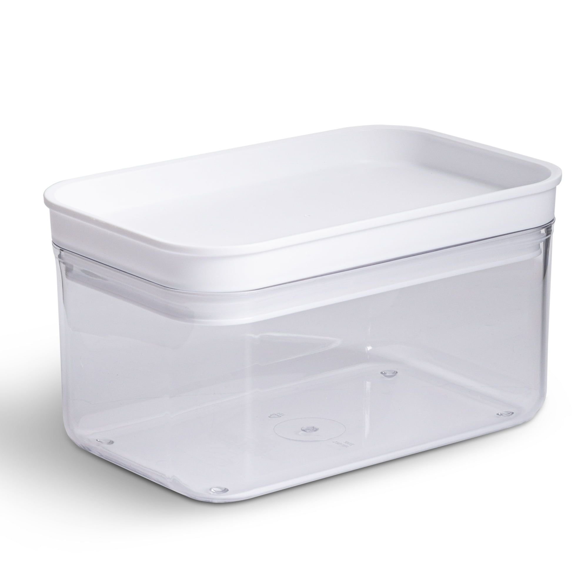 Keep your food fresh and organized in the Mainstays Food Storage Canister with airtight push-top lid. The clear design makes it easy to find what you're looking for and creates more space in any area of your Kitchen with the stackable design. Use to store food, small hardware, jewelry, and so much more. The Canisters are food safe and Pthalate-free and used in any area of your home. Fits most standard shelving; measure shelf to ensure a proper fit.