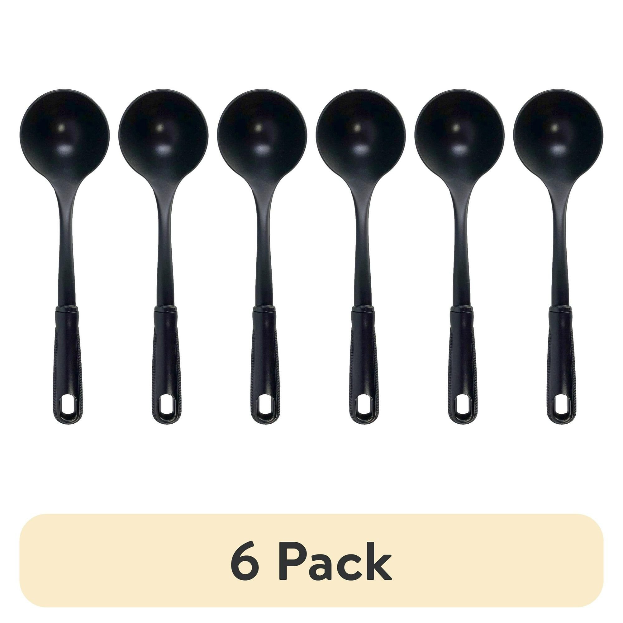 (6 pack) Kitchen Ladle, Black, Nylon, Soft Grip Handle, Dish Washer Safe
