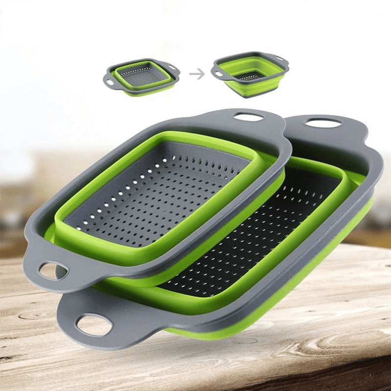 Silicone Folding Drainage Basket; Fruit And Vegetable Cleaning Basket; Folding Filter; Colander Folding Drainer; Kitchen Storage Tool Material: Silicone Color: Green/blue/red Specifications: Large: 29 * 21.9 * 8.6cm/11.4 * 8.6 * 3.3inch Small: 24 * 18.4 * 7.5cm/9.4 * 7.2 * 2.9inch