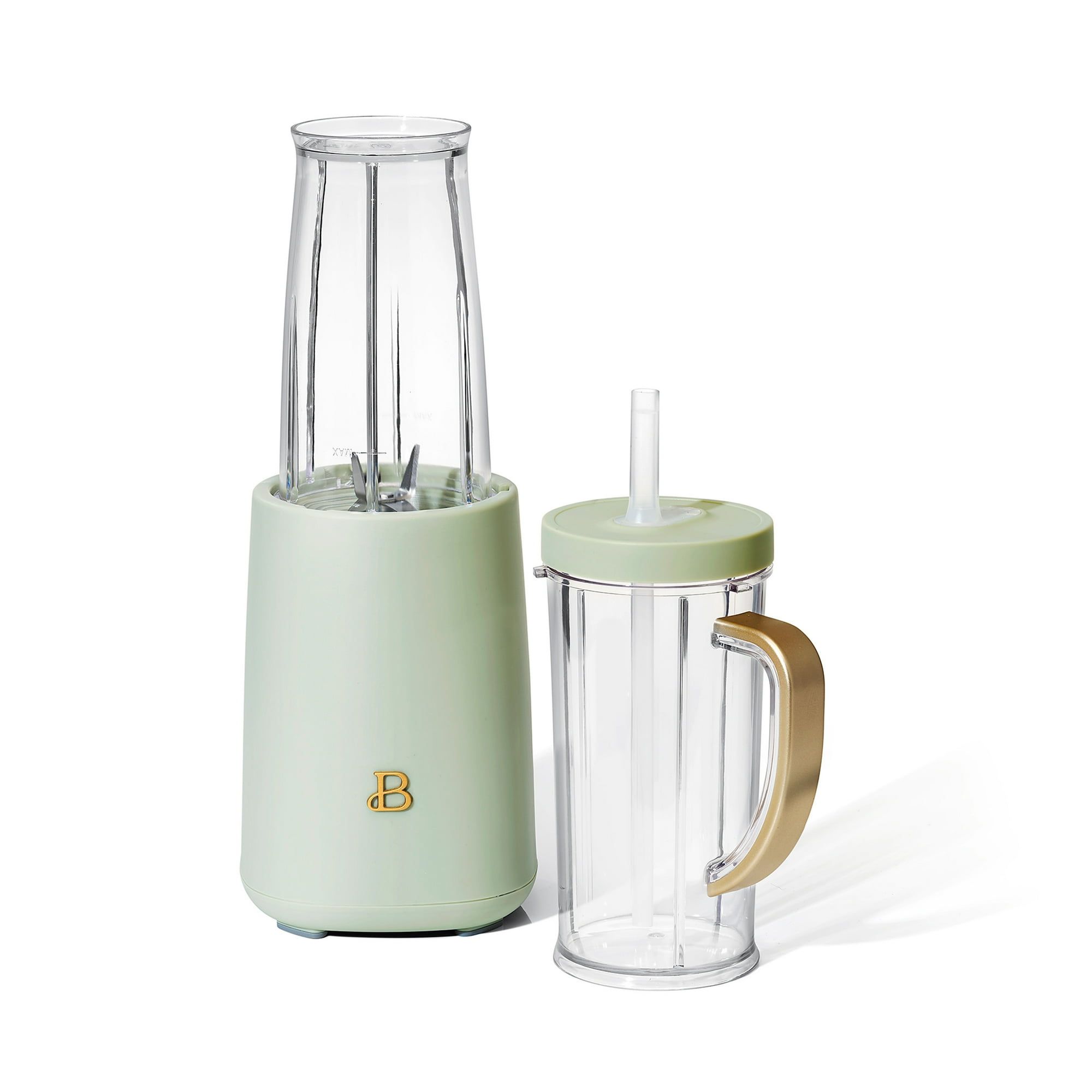 As easy as twist and blend. The  12-Piece Personal Blender will be your go-to for smoothies, sauces, salsas and more. Take your smoothies anywhere in the 16 oz To-Go Travel cup with handle and Drew's signature No Drippy Sippy™ flexible straw and twist-off lid. With dishwasher-safe parts for hassle-free cleaning, this personal blender will be your new favorite countertop companion. Created by Drew Barrymore,  Kitchenware combines elegant design and contemporary colors for high-performance appliances