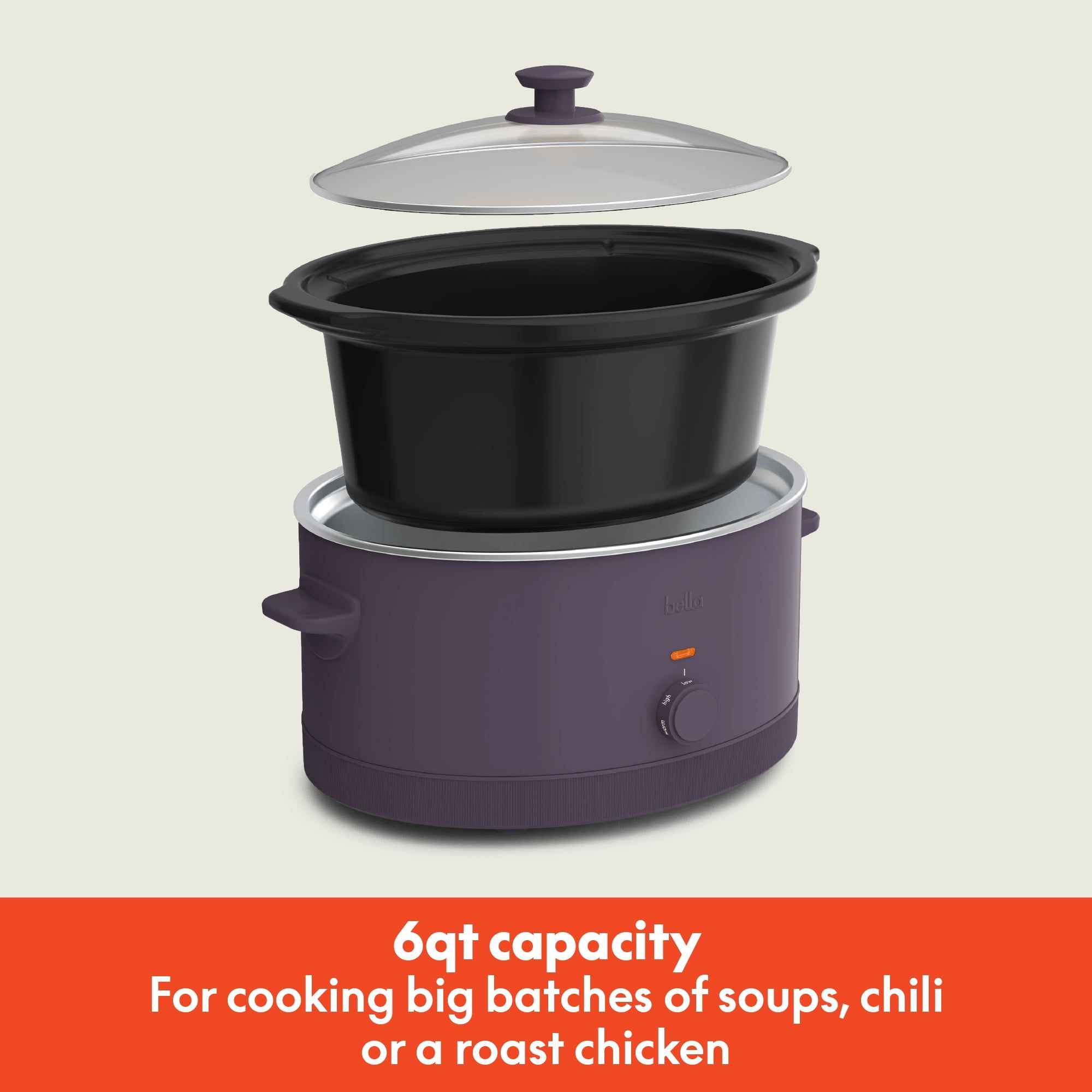 1.6qt capacity slow cooker is perfect for cooking big batches of soups, chili and stew