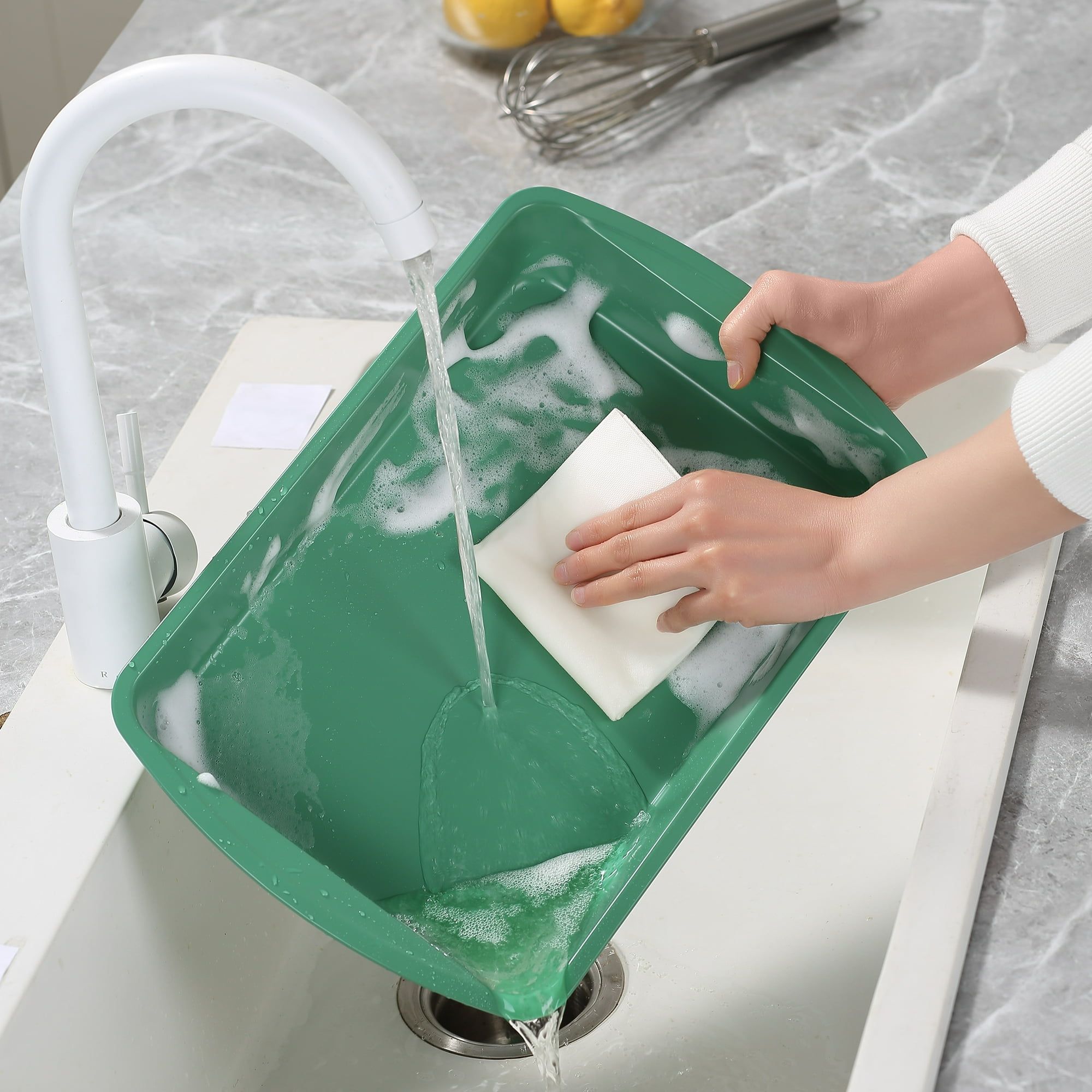 4.Although bakeware is dishwasher safe, wash in mild dishwashing detergent and warm water before first and after each use