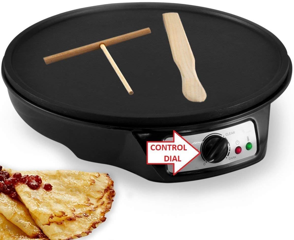 INCLUDES BATTER SPREADER AND WOODEN SPATULA: Achieving great crepes is all about having the right tools. The included batter spreader helps you achieve a thin, uniform texture, while the wooden spatula makes lifting and flipping your crepes a breeze. This complete home cooker kit has everything you need.